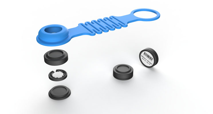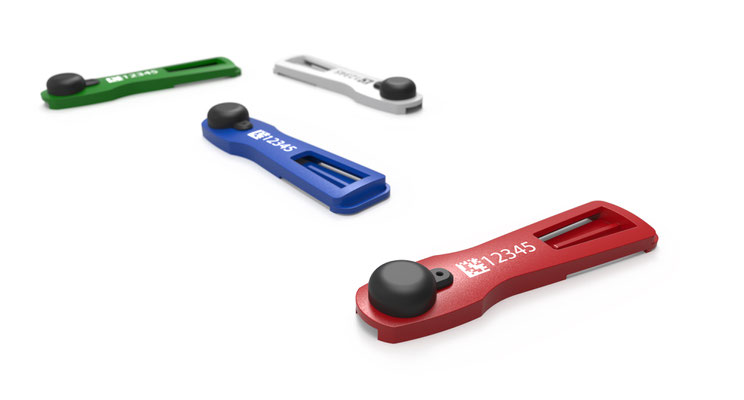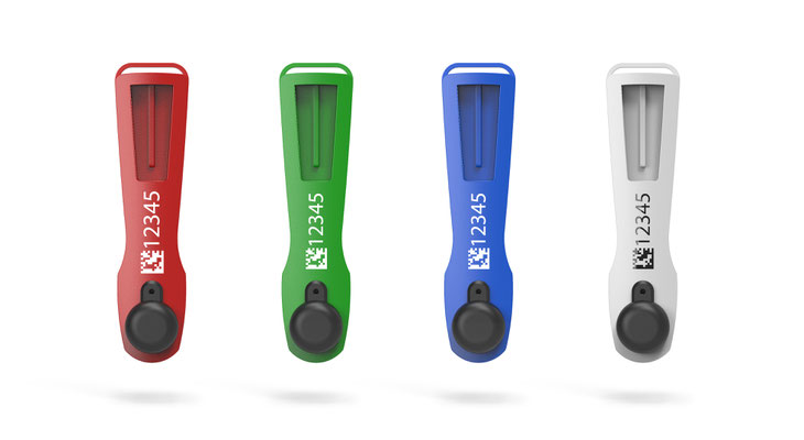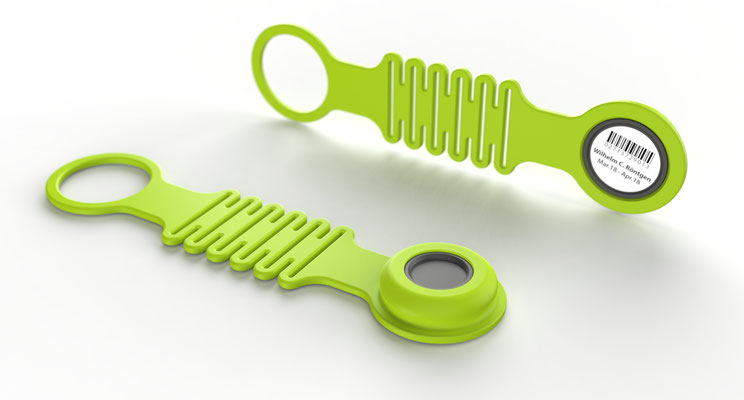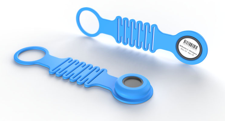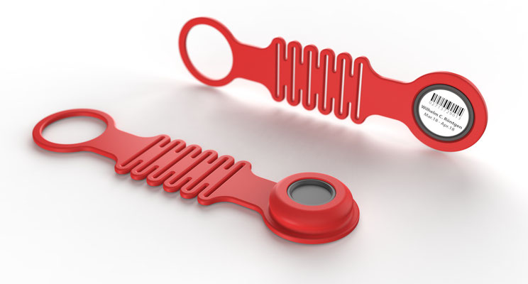 Each dosimeter is uniquely identified using a Data Matrix code and an embedded RFID chip (optional).