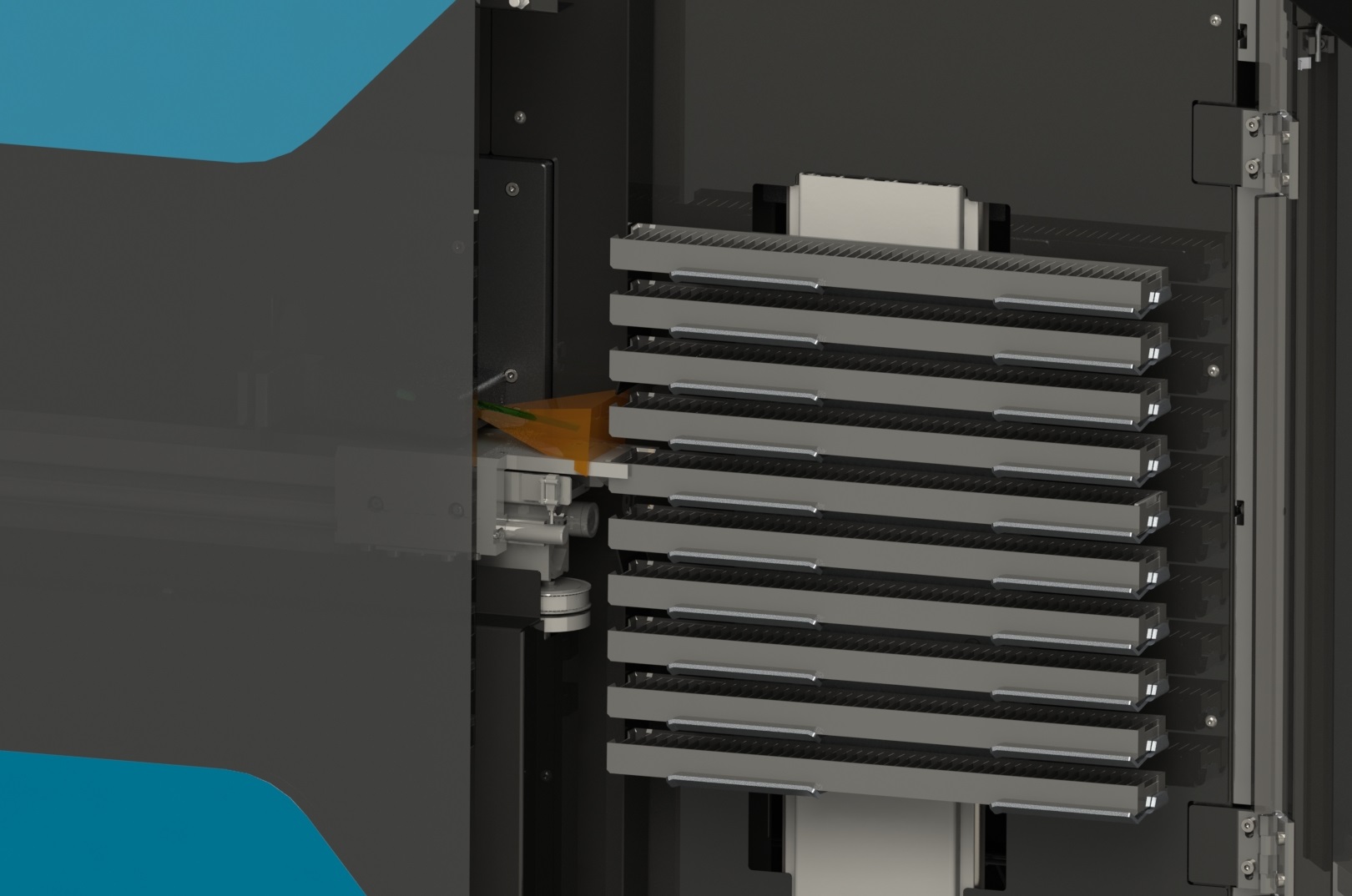 The automated system includes 10 magazines, each capable of holding 50 myOSL dosimeters, allowing for continuous, hands-free operation. This modular design supports streamlined workflows and reduces manual handling, improving both speed and accuracy in OSL dosimeter evaluation.